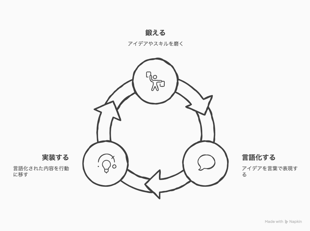 研修は「現場で鍛える → 振り返って言語化する → 翌日から実装する」のサイクルで設計しています。
